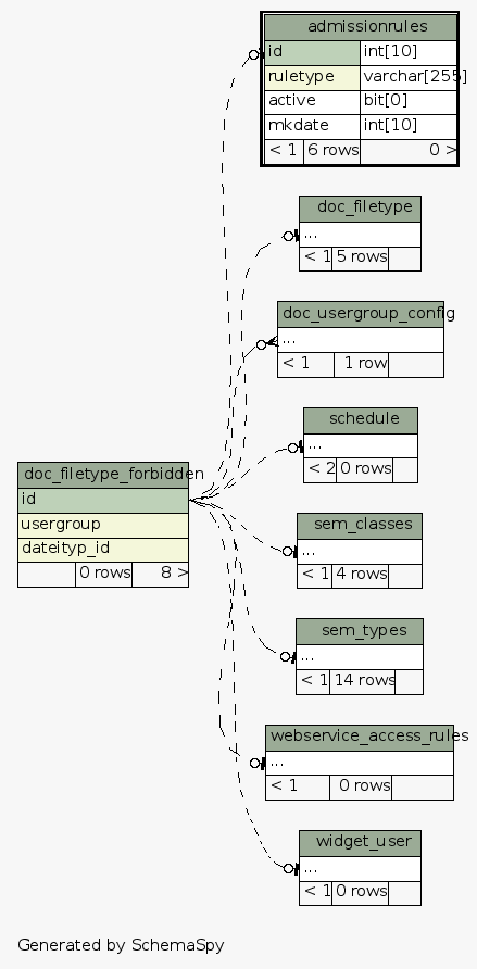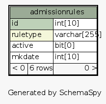 | Table studipjlu_31.admissionrules | Generated by SchemaSpy |