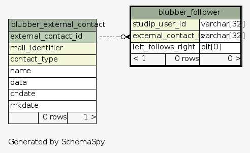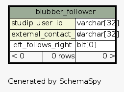 | Table studipjlu_31.blubber_follower | Generated by SchemaSpy |