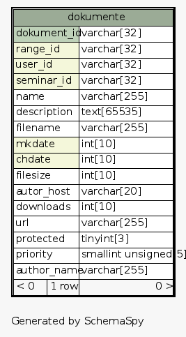 | Table studipjlu_31.dokumente | Generated by SchemaSpy |
