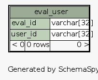 | Table studipjlu_31.eval_user | Generated by SchemaSpy |