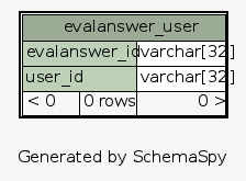 | Table studipjlu_31.evalanswer_user | Generated by SchemaSpy |