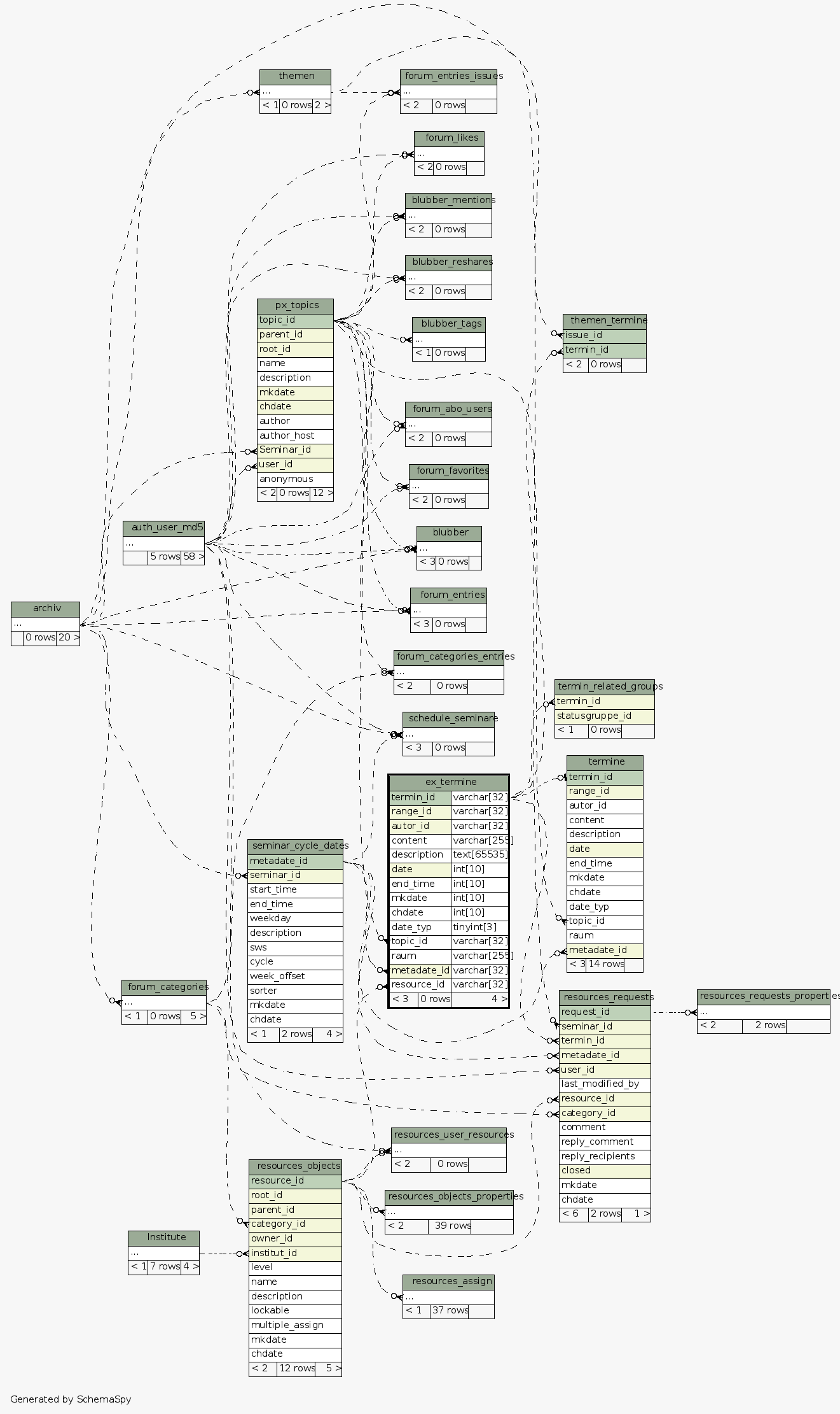 | Table studipjlu_31.ex_termine | Generated by SchemaSpy |