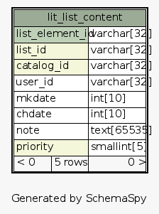 | Table studipjlu_31.lit_list_content | Generated by SchemaSpy |