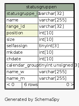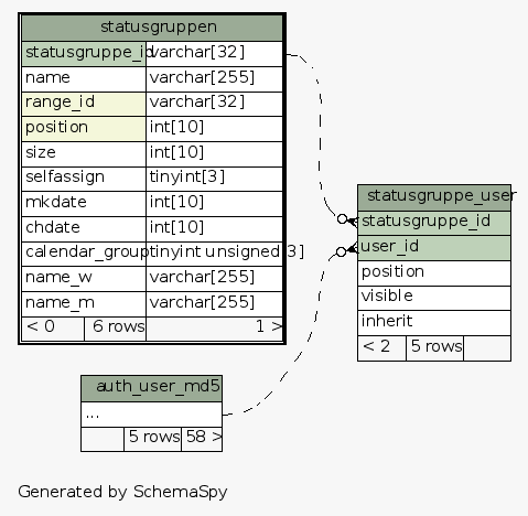 | Table studipjlu_31.statusgruppen | Generated by SchemaSpy |