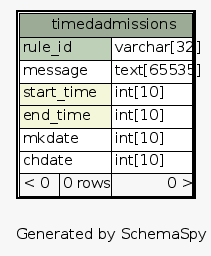 | Table studipjlu_31.timedadmissions | Generated by SchemaSpy |