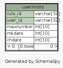 | Table studipjlu_31.userlimits | Generated by SchemaSpy |