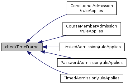Reimplemented in ConditionalAdmission, LimitedAdmission, PasswordAdmission, TimedAdmission, CourseMemberAdmission, and ParticipantRestrictedAdmission.