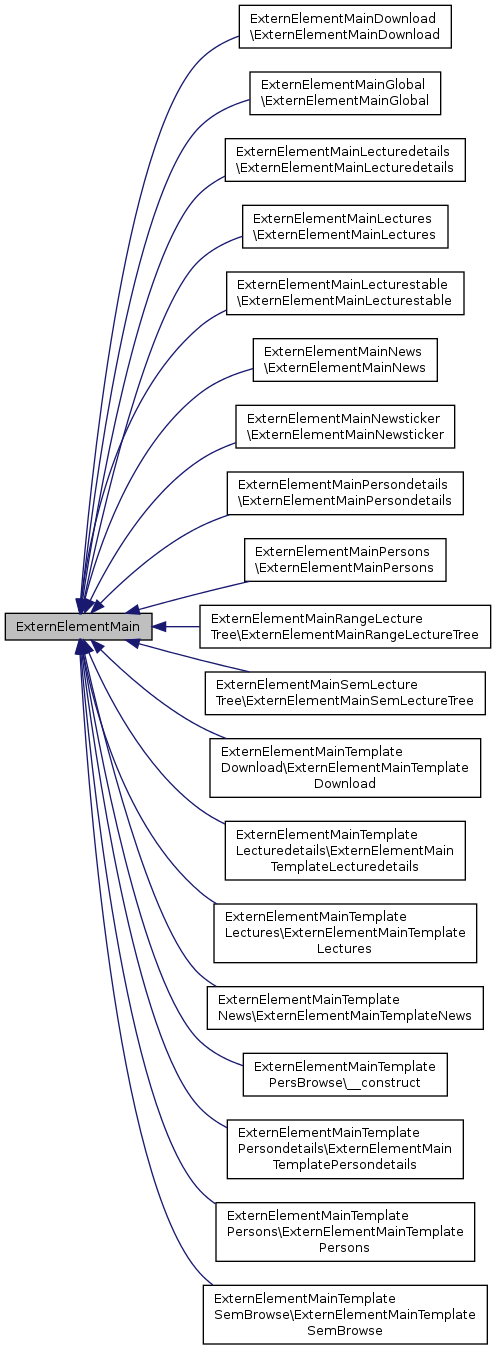 Reimplemented in ExternElementMainLecturestable, ExternElementMainTemplateDownload, ExternElementMainDownload, ExternElementMainGlobal, ExternElementMainLectures, ExternElementMainTemplateLectures, ExternElementMainTemplateNews, ExternElementMainLecturedetails, ExternElementMainNews, ExternElementMainPersondetails, ExternElementMainPersons, ExternElementMainRangeLectureTree, ExternElementMainSemLectureTree, ExternElementMainTemplatePersBrowse, ExternElementMainTemplatePersons, ExternElementMainNewsticker, ExternElementMainTemplateLecturedetails, ExternElementMainTemplatePersondetails, and ExternElementMainTemplateSemBrowse.