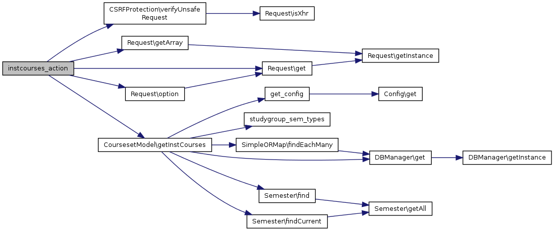 Fetches courses at institutes specified by a given course set, filtered by a given semester.
