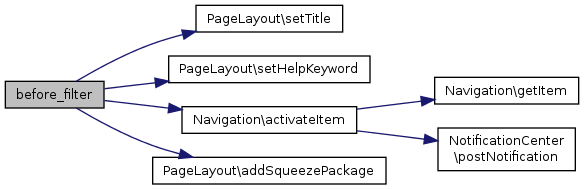 Before filter, basically initializes the controller by actvating the according navigation entry and other settings.