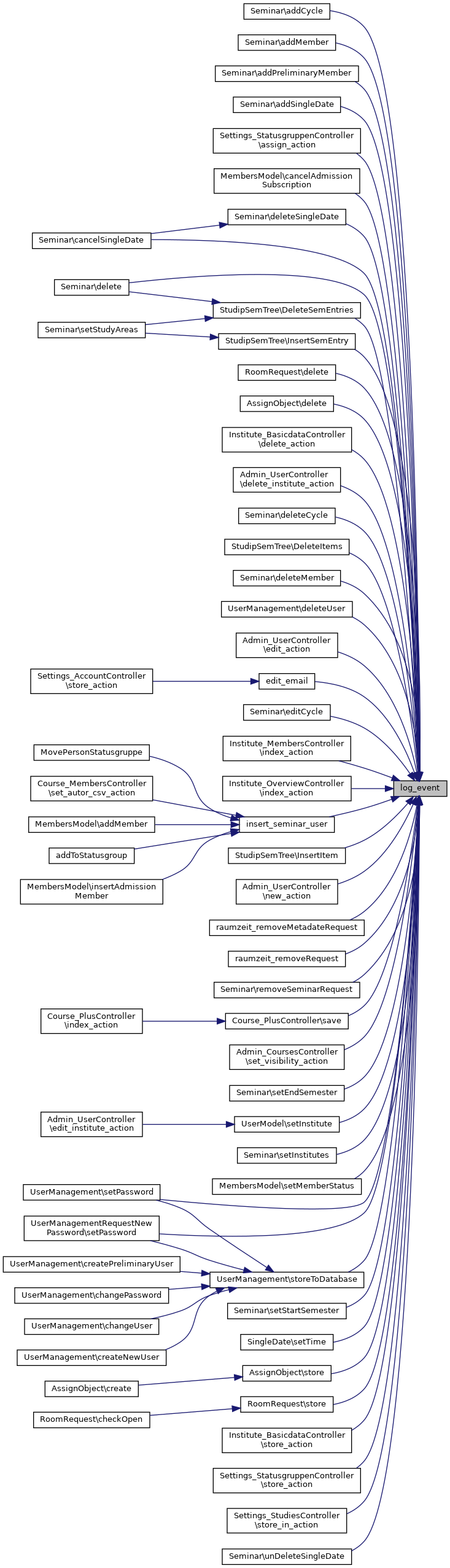 Logs an event to the database after a certain action took place along with the ids of the range object the action possibly affected. You can provide additional info as well as debug information.