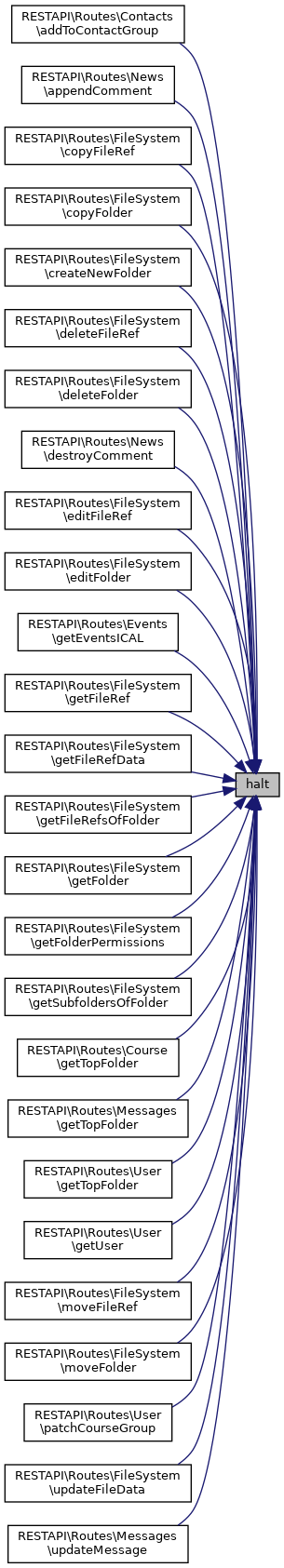 | mixed | $args | optional; any combinations of the three parameters as in RouteMap::halt |