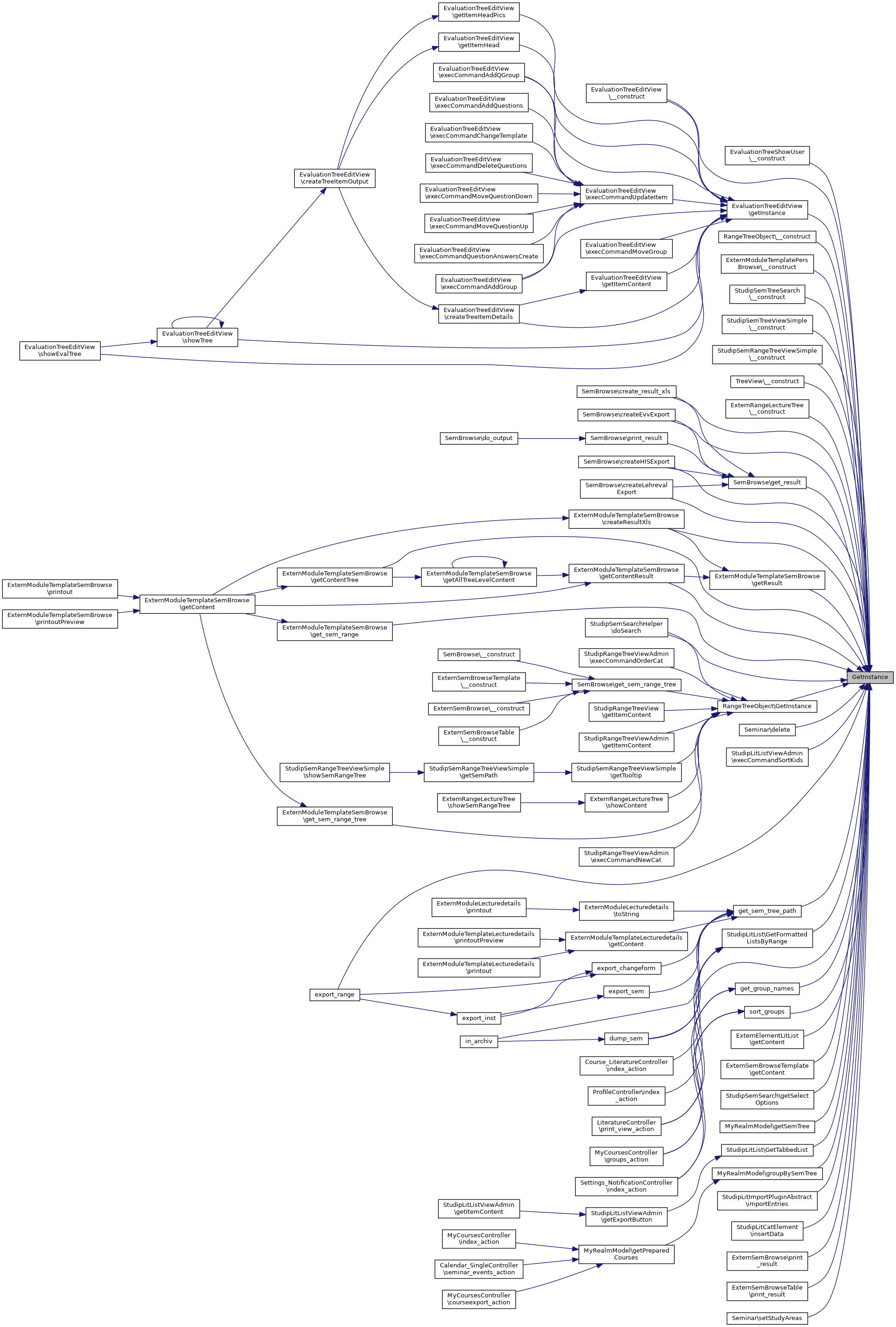 $my_tree = StudipRangeTree::GetInstance("name_of_tree_class")- Parameters