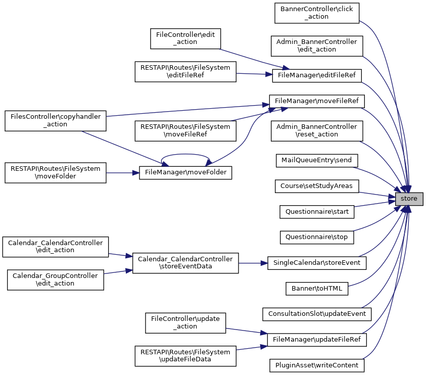 sends a store message to all initialized related objects if a relation has a callback for 'on_store' configured, the callback is instead invoked