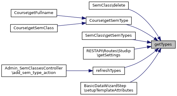 Returns an array of all SemTypes in Stud.IP. Equivalent to global $SEM_TYPE variable. This variable is statically stored in this class.