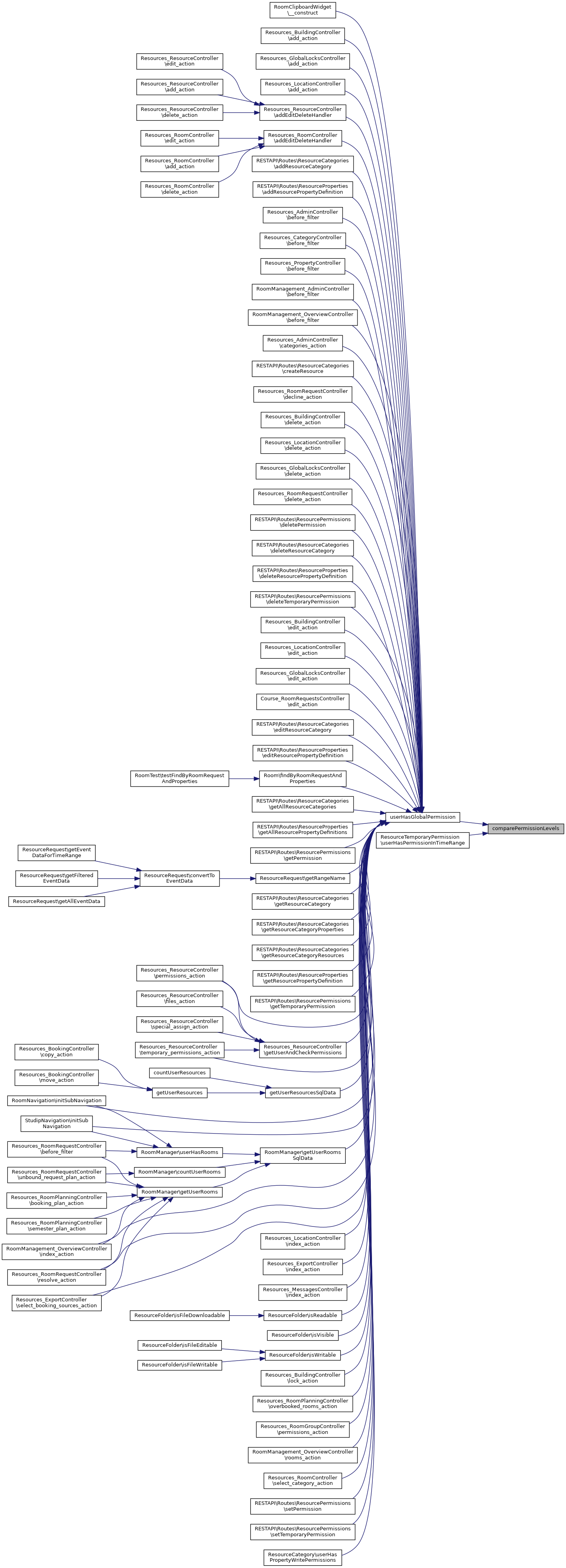 | InvalidArgumentException | if $level or $other_level are either not set or if they contain invalid permission level strings. |