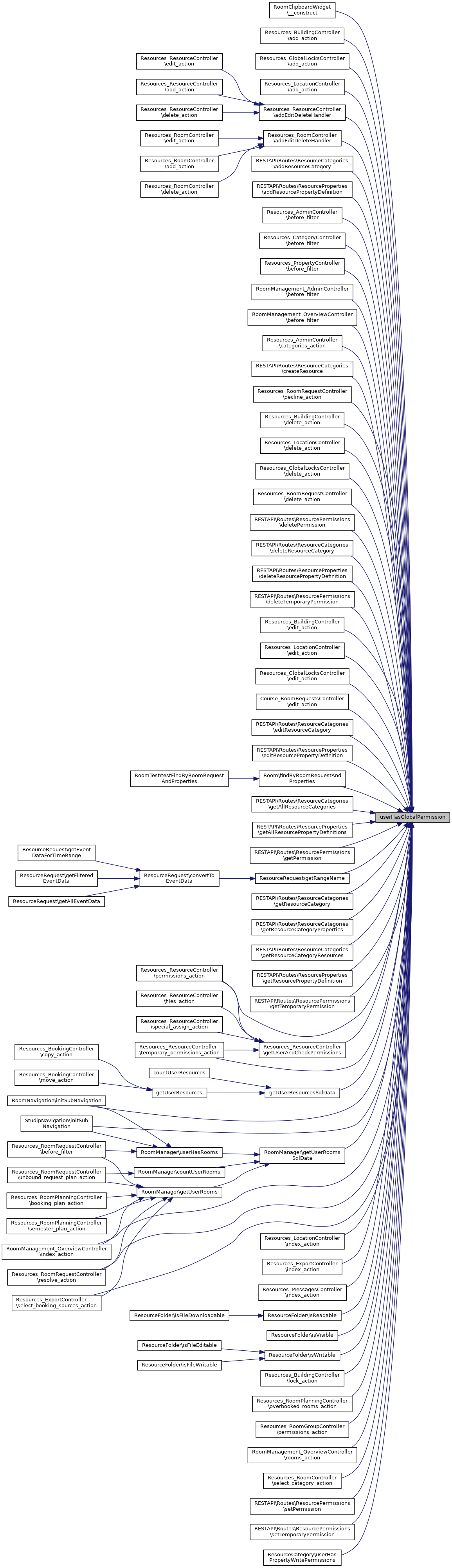 | static | userHasGlobalPermission (User $user, $requested_permission='user') |